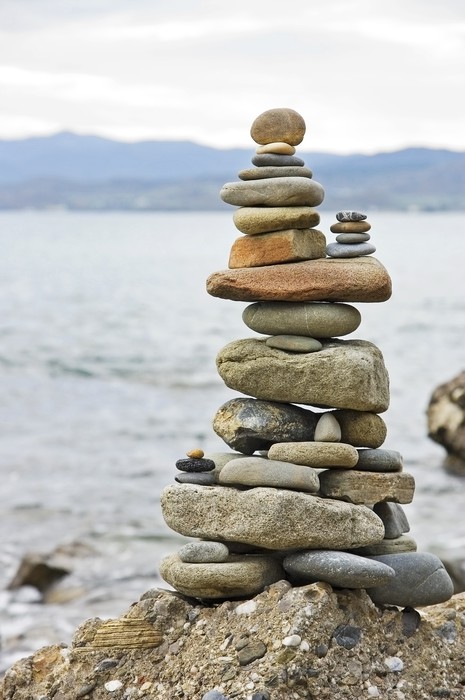 El núcleo del ejercicio es intentar poner todas esas piedras en equilibrio, una encima de otra, creando una torre o pilar.